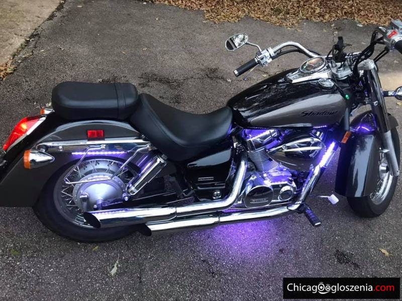 Sprzedam Honde Shadow Xcc. X rok w bardzo dobrym stanie. Przebieg Xmil regularnie serwisowany. Caly motocykl posiada podswietlenie led w X kolorach do wyboru , skurzane box na obie strony, oparcie tylne dla pasażera i duza szybe przednia z pleksyglass. Orginalny wydech Vince&hines co daje fajny mocny dzwiek motocykla.