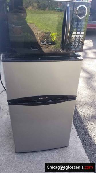small refrigerator with freezer and microwave great for collage , $X for both