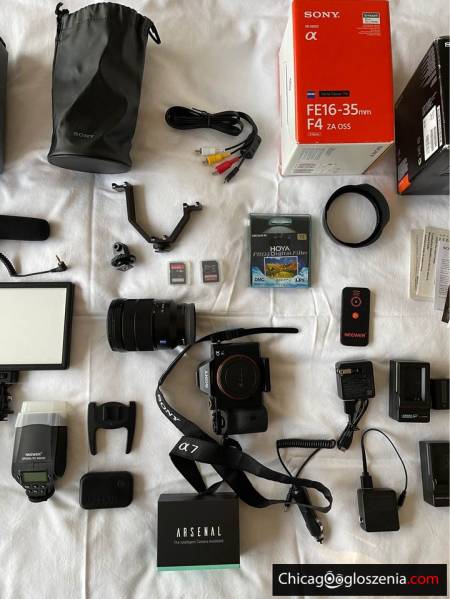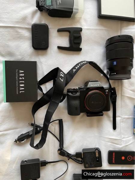 Like new body. Ultra low X shutter count. Included is a zeiss X-X mm FX lens in like new condition. Also included- X batteries, multiple chargers, X memory cards, flash, X micro studio lights, carrying case, polarized filter, tree, shot gun mic, original boxes and paperwork, remote control, and artificial intelligence camera assistant (shoot like a pro with settings chosen for you with this great tool). Originally paid about $X,X!
