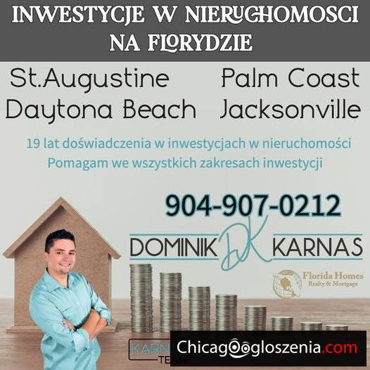 Jestem agentem od nieruchomości na północno wschodniej Florydzie. Pracuję w powiecie St. Johns oraz w okolicach Jacksonville, St. Augustine, Palm Coast, Daytona Beach.
