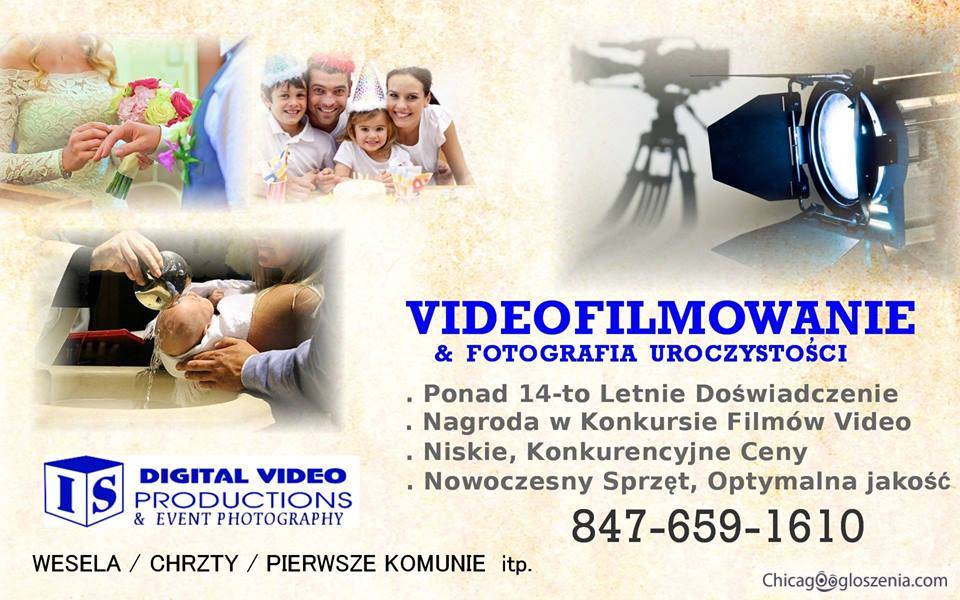 W zyciu kazdego z nas jest wiele niepowtarzalnych momentow i wydarzen ktore warto by uwiecznic za pomoca video lub foto, My robimy to na rynku polonijnym juz ponad X lat. Oferujemy wysoka jakosc naszych uslug w bardzo konkurecyjnych cenach. Dla zainteresowanych chetnie mozemy pokazac demo.