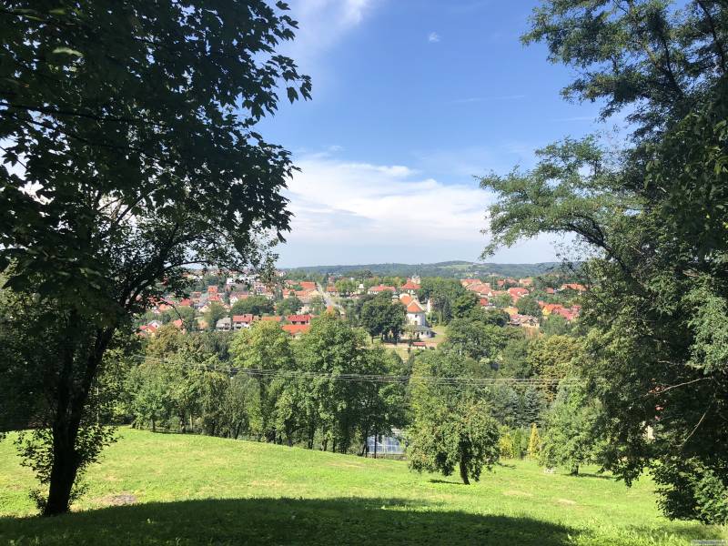 Nieruchomość położona na wzgórzu oddalonym od drogi publicznej (duża prywatność) z pięknym widokiem na panoramę miasta i okolicę.