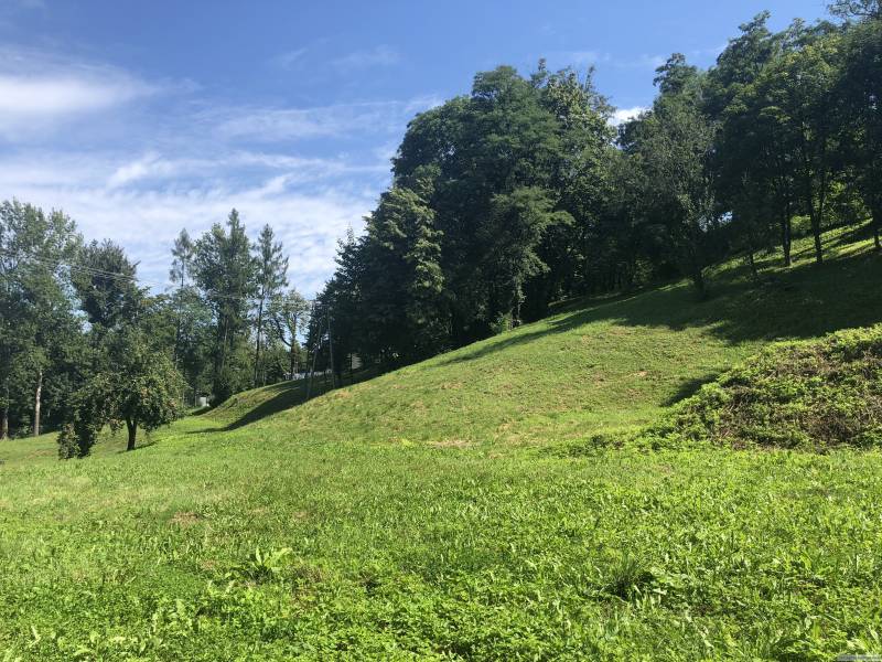 Teren nieruchomości jest stokiem opadającym w kierunku zachodnim z wymodelowanymi półkami a także powierzchnią prostą w miejscach pierwotnej zabudowy.
