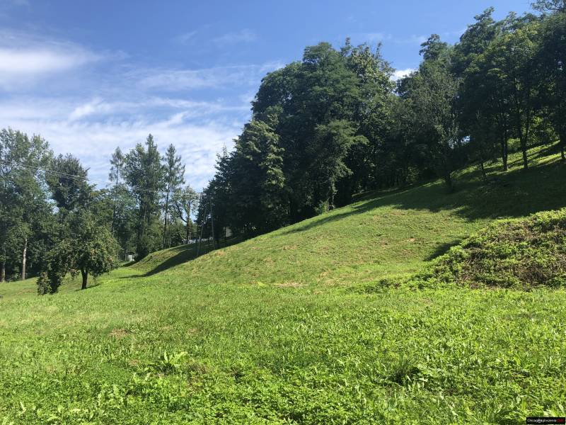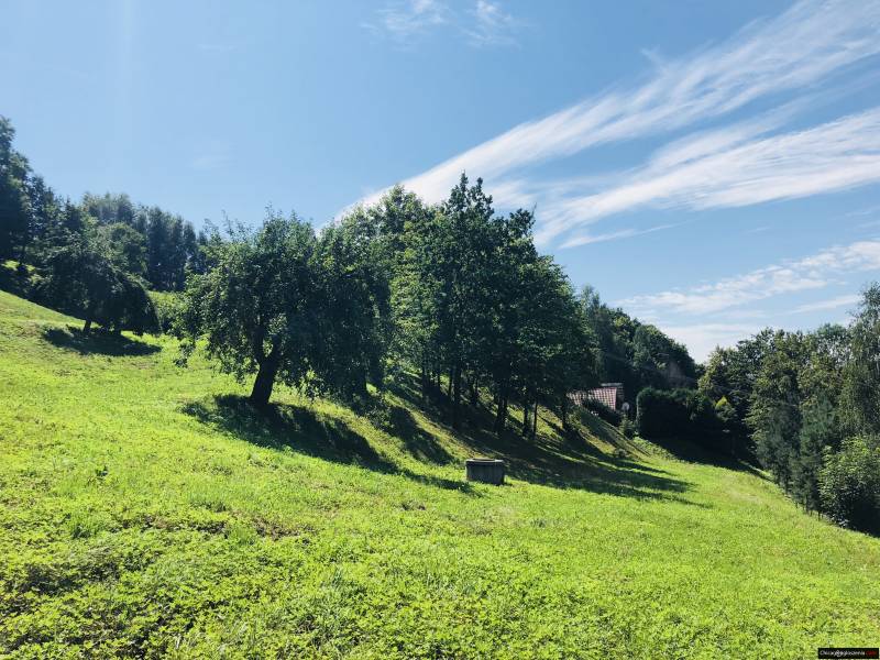 Teren nieruchomości jest stokiem opadającym w kierunku zachodnim z wymodelowanymi półkami a także powierzchnią prostą w miejscach pierwotnej zabudowy. Na terenie nieruchomości znajdują się kamieniołom, drzewa owocowe, woda (własne studnie) i starodrzew. Cały teren jest porośnięty trawą. Działka jest zadbana (X razy w roku koszona) Media – działka posiada dostęp do sieci wodociągowej, gazowej i energetycznej.