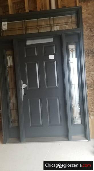 New!!! entry door never installed. X side lights and matching window on top. Outside brown color ,inside White. W X" H X X/X"