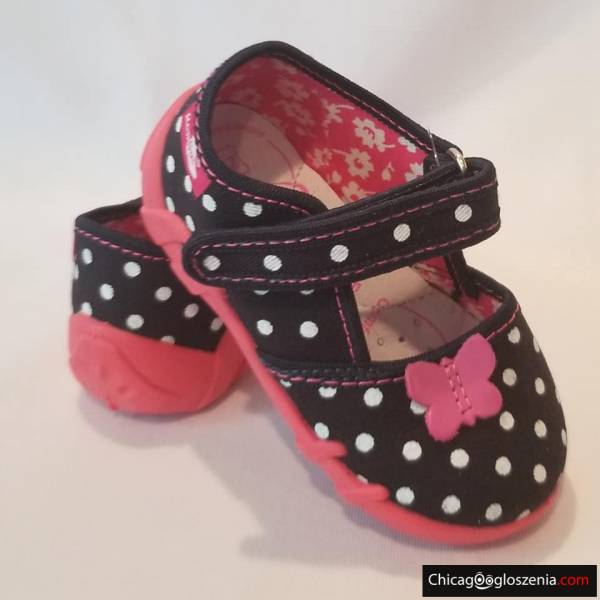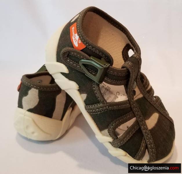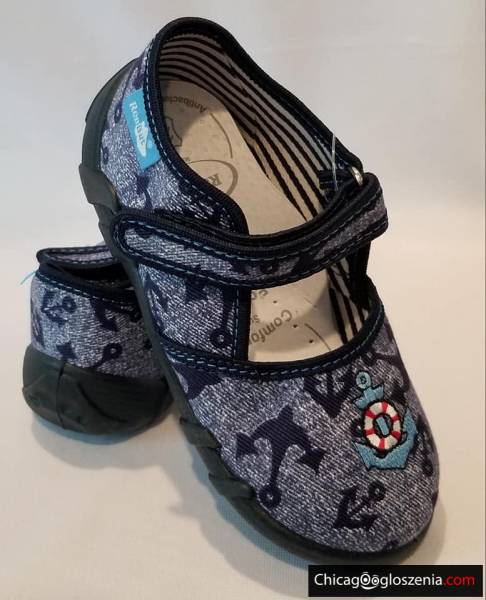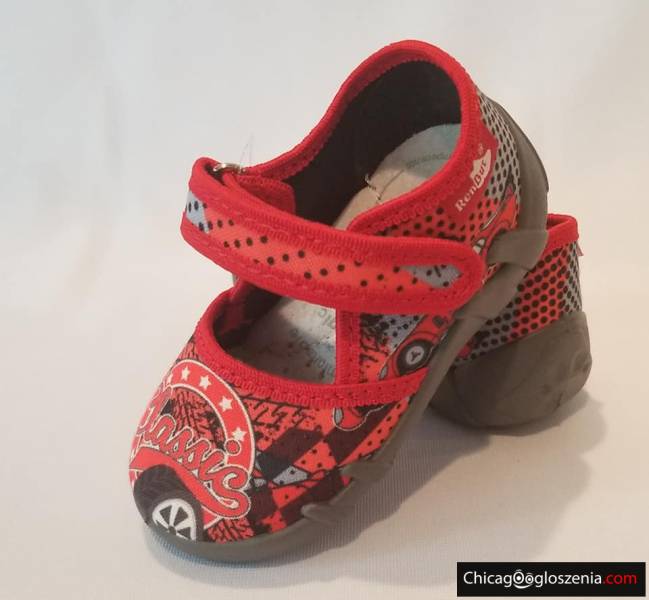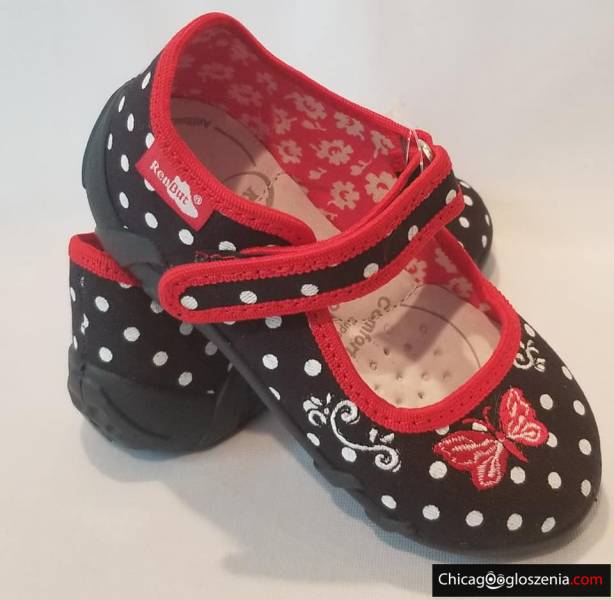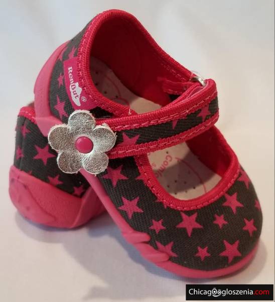 REN BUT - obuwie dziecięce, przedszkolne. Wierzch oraz wnętrze z naturalnej bawełny. Wkładka profilaktyczna ze skóry. Spód z tworzywa PVC. Obuwie wyróżnione znakiem "zdrowej stopy", polecane w profilaktyce kształtowania prawidłowej budowy stopy dziecka